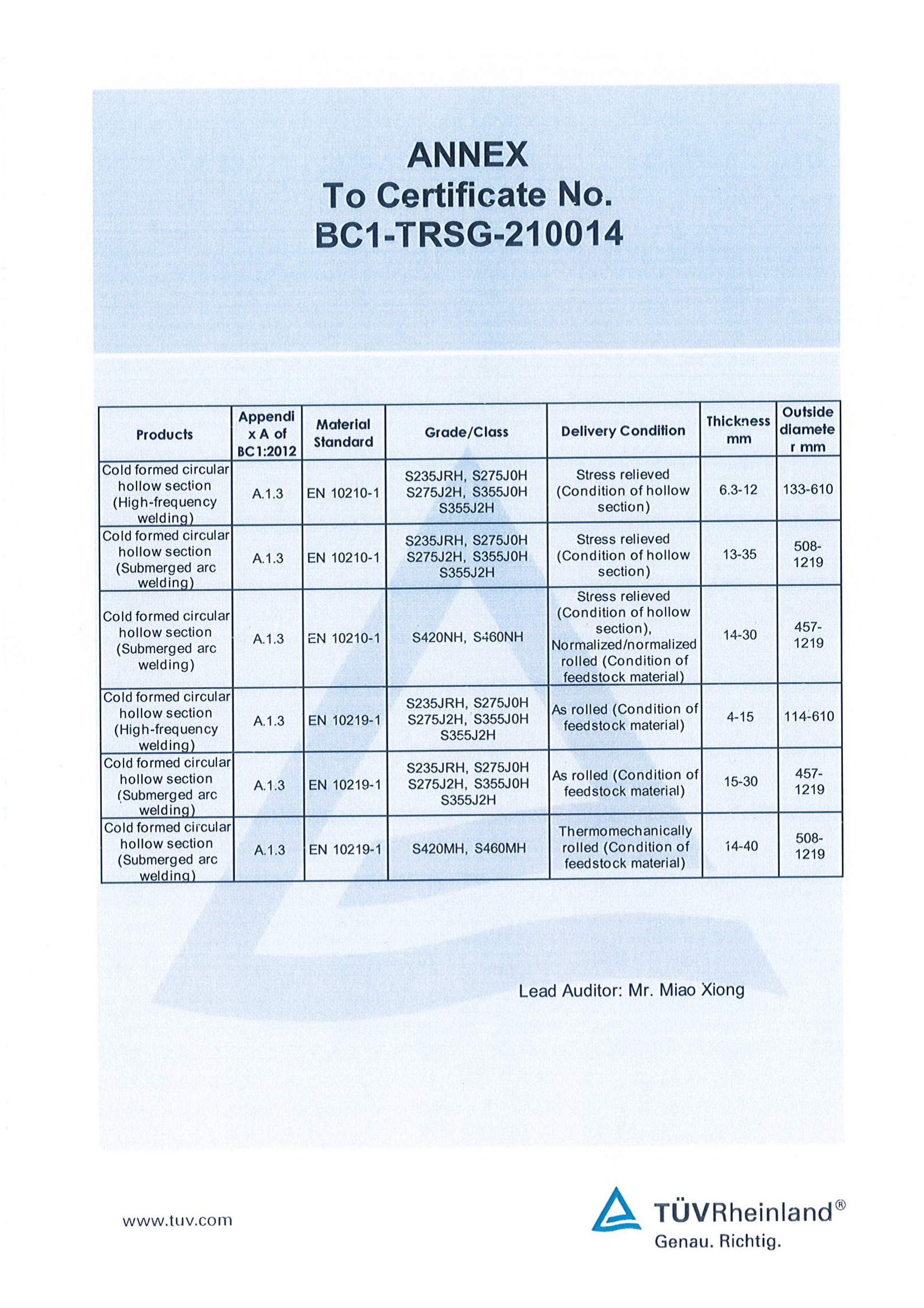 公司現(xiàn)有17條新型的自動化鋼管生產(chǎn)線,包括Φ73-660.4高頻直縫焊鋼管生產(chǎn)線14條、Φ406.4-Φ1422.4直縫雙面埋弧焊鋼管生產(chǎn)線3條,并配備有一條防腐生產(chǎn)線,可進(jìn)行3PE、2PE、FBE、2PP、3PP防腐處理,同時還可提供鋼管深加工服務(wù)。公司擁有先進(jìn)的理化實驗室,可承擔(dān)鋼管的各項物理及化學(xué)檢測與試驗。公司先后取得了ISO9001質(zhì)量管理體系認(rèn)證、ISO14001環(huán)境管理體系認(rèn)證、ISO45001職業(yè)健康安全管理體系認(rèn)證、特種設(shè)備制造許可證、API5L和API2B認(rèn)證證書、歐盟CE認(rèn)證、俄羅斯GOST認(rèn)證、中海油入網(wǎng)證、安全生產(chǎn)標(biāo)準(zhǔn)化二級企業(yè)等標(biāo)準(zhǔn)質(zhì)量體系認(rèn)證。